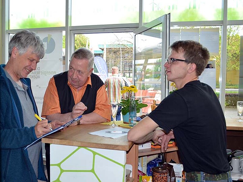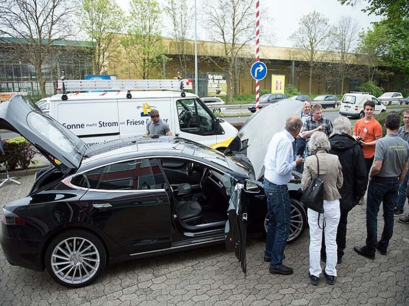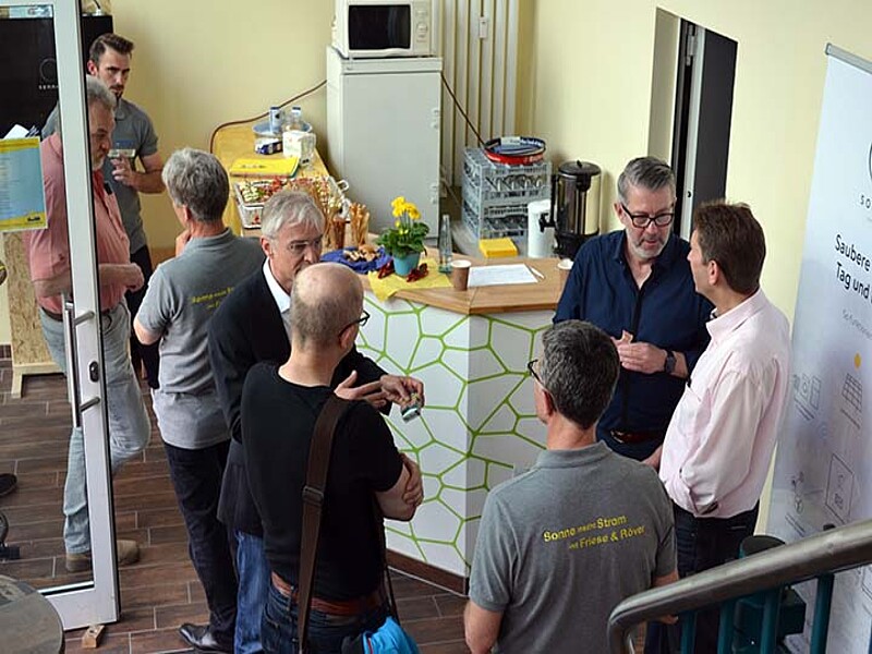 Neben vielen Kunden, die sich über die Nachrüstung ihrer PV-Anlage mit einem Stromspeicher informieren wollten, kamen zahlreiche Interessenten, die Beratung für die gesamte PV-Technik suchten. Freudig überrascht wurden wir von zwei unserer Kunden, die mit Ihrem Elektroauto vorgefahren waren und mit Neugierigen sogar eine Probefahrt unternahmen.