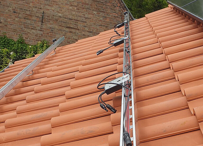 Deshalb achten wir besonders penibel auf eine saubere Kabelverlegung ohne Beschädigung der Kabelisolierung. DC-(Gleichstrom-)Kabel sind doppelt isoliert, wir verlegen sie an kritischen Stellen in Schutzschläuchen oder Kabelkanälen.