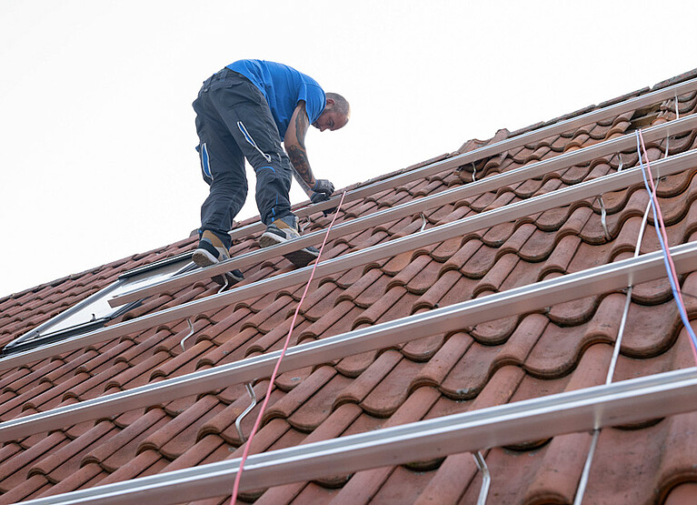 Die verschiedenen Dacharten erfordern jeweils geeignete Montagesysteme. Auf Schrägdächern mit Eindeckungen aus Ziegel oder Biberschwanz werden dachparallele Schienensysteme mit sogenannten Sparrenankern mit dem Dach verbunden.