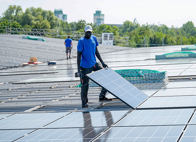 Mit den sogenannten Ost-West-Gestellen wird die Dachfläche optimal ausgenutzt, da keine Verschattungsabstände zwischen den Modulen erforderlich sind. Weiterer Vorteil: Die Stromproduktion erfolgt gleichmäßiger über den Tag, erhöht damit den Eigenverbrauch und die nach West ausgerichteten Modulen laden den evtl. vorhandenen Speicher zuverlässig zur Nacht.