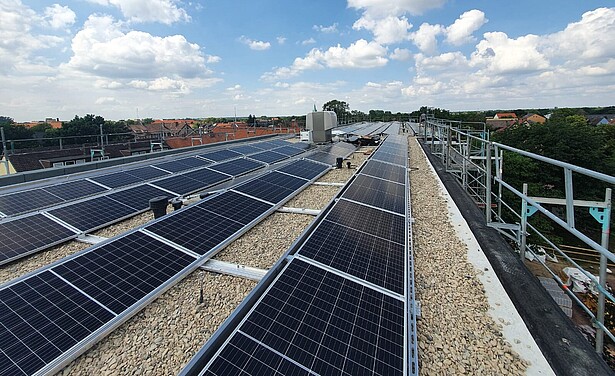 • Spitzenleistung: 30 kWp (2021) + 15,6 kWp Eigenverbrauch (2024) + 99 kWp Volleinspeisung (2024)